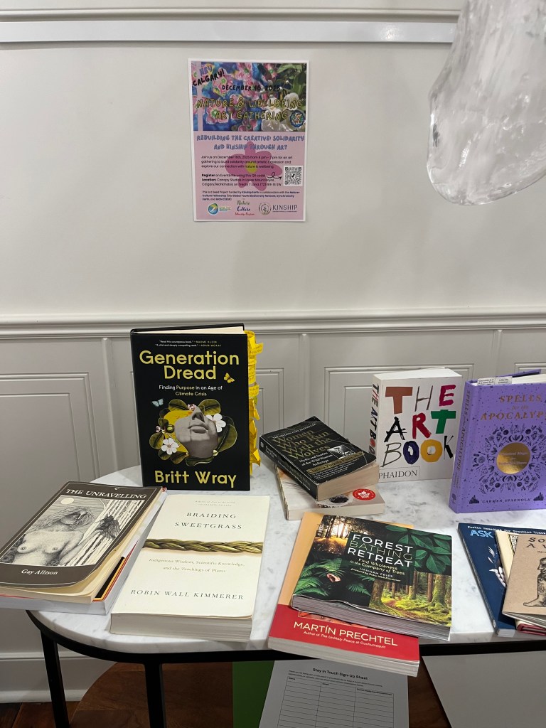 This is the virtual space intended to celebrate and amplify the amazing artists and their original pieces created at our inaugural Nature & Wellbeing Art Gathering. This event was held at Canopy Art Studios in Calgary/Mohkínstsis on Treaty 7 Land. The virtual exhibit will be available for 6 months (Jan 22, 2026 – June 22, 2026).